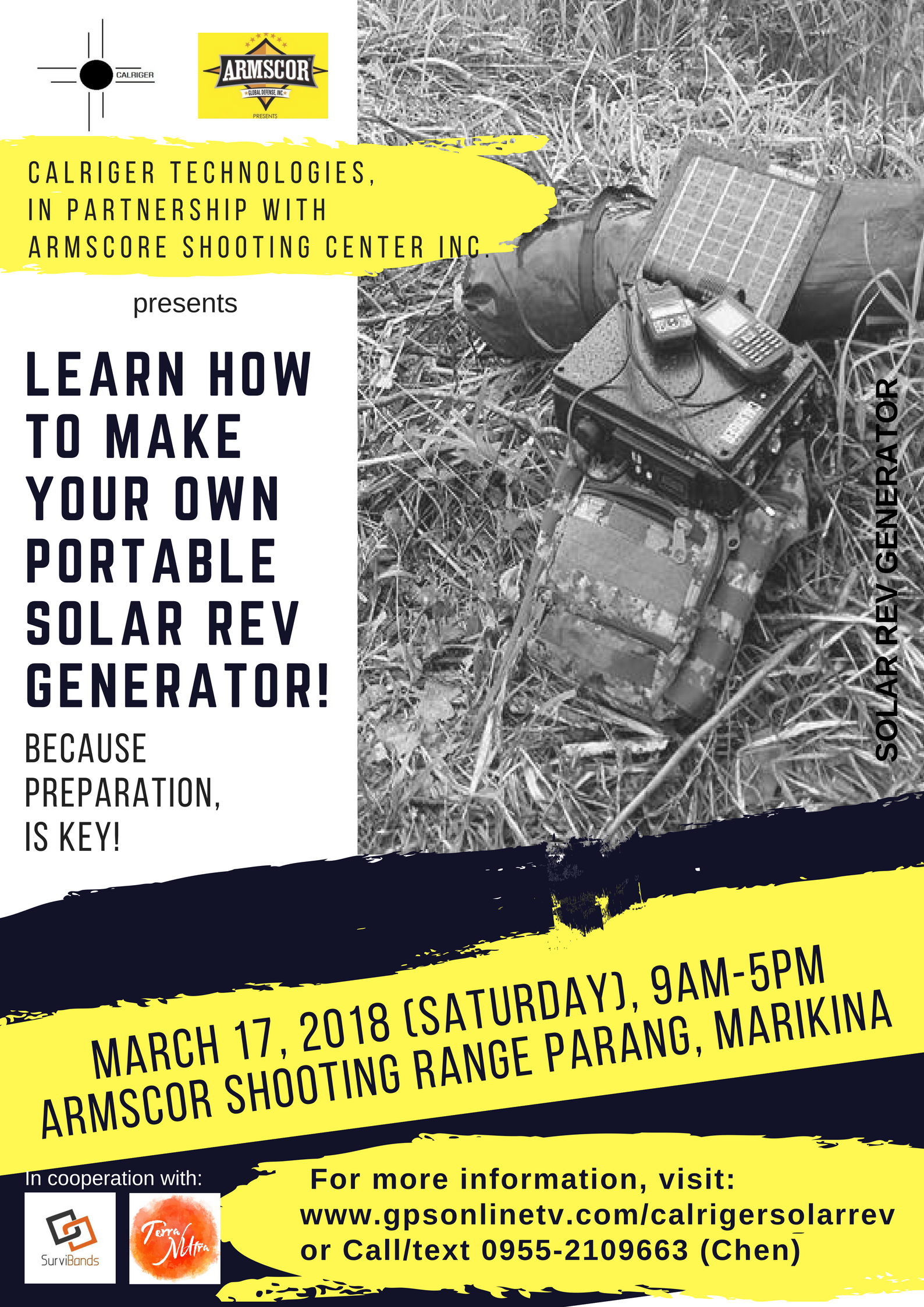 If you received this, it means you're interested with our DIY Solar Rev Generator workshop or solar in general. For those planning to join the workshop please check the details below: